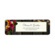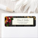 Étiquette d'adresse de retour en bois de grange rustique avec de beaux bouquets de tournesol et de rose bordeaux et des lampes à cordes. Idéal pour votre été ou automne automne élégant pays rustique jardin extérieur mariages ou tout autre mailings d'automne.