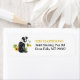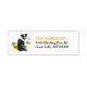 Le côté gauche de ces étiquettes d'adresse de retour présente l'image d'un magnifique chien berger australien noir et blanc parmi des tournesols épars. Votre texte personnalisé est en or et noir à droite.