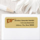 Support avec look fer forgé. L'image graphique du support d'angle droit, avec trois feuilles de tailles différentes, se trouve dans le coin supérieur gauche. Personnalisez avec le nom et l'adresse à droite. L'image est rouge foncé/brun sur arrière - plan tan.