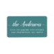 Teal Script Family return address label featuring a rich teal background with white handwritten script for the family name and a clean, easy-to-read address below. The cool teal tone adds a fresh, modern look while keeping your mailing details clear and well-organized. Ideal for everyday mailing, moving announcements, holiday cards, and small business correspondence. Easily personalize with your details.