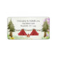 Camping Étiquette de adresse Woodland avec tentes avec Buntings, feu de camp, arbres et fleurs.