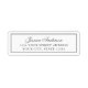 Un design simple et élégant d'étiquette d'adresse de retour avec un modèle texte pour personnaliser avec votre nom et votre adresse de retour. Le texte élégant est entouré d'une bordure gris. Idéal pour les invitations de mariage, les fêtes, les douches et toute correspondance.