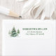 Ce design festif sur le thème de Noël présente de beaux voeux de Noël - typographie rétro verte avec des arbres de Noël enneigés. Nom de famille personnalisé.