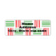 Ces étiquettes d'adresses de retour ont un design moderne du milieu du siècle qui ressemble à un tissage avec des lignes rouges et vertes sur un champ de blanc.