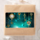 Or, clés antiques avec engrenages et cadrans accrochés sur chaînes dorées sur arrière - plan vert lumineux.