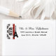 AJOUTEZ VOTRE NOM À CES ÉTIQUETTES D'ADRESSE À THÈME FRANÇAIS ET PARISIEN CHIC AVEC TOUR EIFFEL SUR UN ÉLÉGANT ARRIÈRE - PLAN FLORAL BLACK AND WHITE DAMASK ET UN DESIGN RIBBON IMPRIMÉ EN ROUGE. CONÇU PAR CHRISSY H. STUDIOS, LLC. Tous droits réservés.