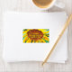 Le grand tournesol jaune sur ce étiquette de adresse fait une présentation joyeuse. Alors qu'est-ce qui m'a fait peindre cette fleur ? Les tournesols sont de si jolies fleurs ! En regardant ce tournesol géant qui poussait dans un jardin du Colorado, c'était extraordinaire. Tout d'abord, je n'ai jamais su qu'ils ont grandi aussi gros. En traversant le pays, j'avais vu des champs de tournesols, tous tournés avec leurs visages vers le soleil, mais étaient-ils si grands, ou était-ce une anomalie ? Il s'avère que le record de hauteur de tournesol est d'Allemagne à une hauteur d'un peu plus de 10 pieds, et celui-ci à environ 2 mètres n'était même pas proche. Il me semblait grand, et c'est comme ça que je l'ai peint, regardant le ciel avec des nuages bouffants flottant au-dessus avec la grande fleur jaune qui me regardait en bas.