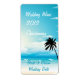 Teal blue Ocean and clear blue sky. Ocean waves crashing to the shore , seagulls flyng in the sky and a silhouette of palm trees - Fully Customizable Wedding invitations and matching extras.