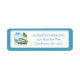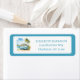 These coastal personalized return address labels feature a retro van bus in blue and white with tropical palm trees. Personalize with your choice of name and address. Great for beach party invitations.