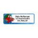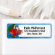 Ces étiquettes de adresse colorés de Scarlet Macaw ont un dessin animé du perroquet à l'intérieur d'un cercle bleu, avec un palmier tropical derrière. L'une des ailes de l'oiseau est étirée. Le nom de l'espèce est imprimé en bas. Produits Scarlet Macaw uniques pour les amateurs de perroquets.