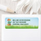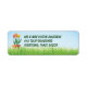 Un pot en terre cuite rempli de tulipes colorées s'assoit dans l'herbe par une belle journée ensoleillée. Idéal pour le printemps ou l'été. Ajoutez un nom et une adresse de retour à droite. Disponible avec des produits correspondants.