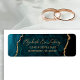 Cette élégante étiquette d'adresse de retour de faire-part de mariage moderne dispose d'un arrière - plan d'aquarelle bleu turquoise orné d'une parties scintillant en faux or. Le texte personnalisable combine un script d'écriture manuscrite de couleur or et des polices de cuivre.