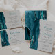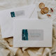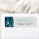 Le bord gauche de cette élégante étiquette d'adresse de retour mariage moderne comporte une bordure turquoise d'aquarelle ornée d'une parties scintillant en faux argent. Le texte personnalisable combine un script d'écriture turquoise et une police de cuivre gris charbon sur un arrière - plan gris pâle.
