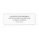 Cette étiquette d'adresse de retour présente une mise en page minimaliste et centrée avec un espace négatif généreux, créant une composition équilibrée et symétrique. Le design utilise une police sérif noire épurée sur fond blanc, mettant l'accent sur la clarté et la simplicité. Son style moderne et élégant est parfait pour ceux qui recherchent un look professionnel mais sans encombrement, idéal pour une correspondance formelle ou une utilisation personnelle où la lisibilité est essentielle. La présentation directe garantit que les informations essentielles ressortent sans effort, transmettant sophistication et précision.