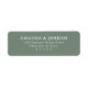 Cette étiquette d'adresse de retour présente une mise en page épurée et centrée avec un espacement généreux sur un fond vert olive. Le design utilise une typographie sérif élégante en blanc croquant pour une lisibilité et une sophistication maximales. Son esthétique minimaliste se concentre uniquement sur le texte, ce qui la rend parfaite pour les invitations officielles ou les annonces importantes. Les espaces personnalisables permettent une personnalisation facile, ce qui garantit que cette étiquette est à la fois pratique et élégante pour toutes les occasions.