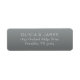 Cette étiquette d'adresse de retour présente un design moderne et élégant avec une mise en page minimaliste. Le fond gris uni est complété par un texte gris clair dans une police sans-serif propre, créant une palette monochromatique harmonieuse. Parfaite pour les occasions formelles comme les mariages ou les invitations, le design met l'accent sur la clarté et la sophistication grâce à son apparence épurée et à l'utilisation efficace de l'espace négatif. Son style discret transmet un sentiment de professionnalisme calme, ce qui le rend polyvalent pour diverses applications où un aspect soigné est souhaité.