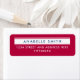 Cette étiquette d'adresse de retour simple mais élégante présente un design contemporain épuré avec une palette rouge, blanc et bleu audacieuse, évoquant un sentiment de fierté américaine. La typographie est épurée et minimaliste, en utilisant des polices sans-serif modernes et propres pour plus de clarté et d'impact. Ce style design allie simplicité et élégance. L'utilisation équilibrée de l'espace et de la couleur permet au message de se démarquer, tout en conservant un aspect professionnel mais accessible. Idéal pour la correspondance personnelle et professionnelle, ce étiquette ajoute une touche d'élégance à toute enveloppe.