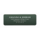 Cette étiquette d'adresse de retour présente un design épuré et minimaliste avec un fond vert foncé et un texte blanc net. La mise en page est simple et centrée, mettant en valeur une police sans empattement moderne qui met l'accent sur la clarté et l'élégance. Parfaite pour ceux qui apprécient l'esthétique simple, cette étiquette allie fonctionnalité et touche professionnelle, ce qui la rend idéale pour une correspondance formelle ou des occasions spéciales où une présentation soignée est souhaitée.