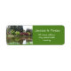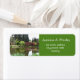 Jardin de printemps époustouflant adresse jardin de printemps étiquettes de adresse personnels. Photo d'étang d'eau, rouge, arbres verts et buissons.
