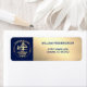 On the right, your personal return information ça, be customized and are printed in marine blue over a gold background.