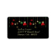 Ces étiquettes de adresse peuvent être utilisés à diverses fins, y compris comme étiquettes d'adresse de retour. Elles arborent une image de boules de Noël et d'étoiles brillantes qui pendent. Le design coloré comprend de l'or, du vert et du rouge. L'image et le texte sont placés sur un arrière - plan noir, et votre texte personnalisé est en or clair.