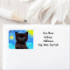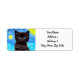 Retourner l'adresse Étiquettes montrant un chat noir dans la peinture de Van Gogh Starry Night! Ce chaton aux yeux bleus regarde agréablement d'un arrière - plan de tourbillons bleus et d'une lune jaune vif. Un cadeau fantastique pour les amoureux de les chats et les collectionneurs d'art hollandais !