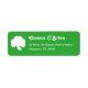 Personnalisé, personnalisé, vert shamrock irlandais trèfle à trois feuilles, St. Patrick's Day simple, élégant, étiquette d'adresse de retour. Entrez simplement votre nom / nom de famille / nom de société, et adresse. Parfait pour les envois personnels et officiels, à la maison et aux affaires. Élégantes étiquettes d'adresse de retour à utiliser le jour de la St. Patrick, anniversaire, mariage, anniversaire du mariage, remise des diplômes, douche nuptiale, baby shower, jours fériés, ou tout autre envoi de la famille pour des occasions spéciales irlandaises.