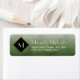 Affichez votre classe intérieure avec ces étiquettes d'adresse de retour en monogramme vert et noir élégantes et élégantes. Cette conception simple et sophistiquée de dégradé brossé avec un cadre moderne en forme de losange avec une bordure en or peut être personnalisée en ajoutant votre initiale monogrammée. Impression plane, NON métallique.