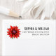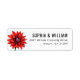 This return address label features a vibrant, hand-drawn red flower with layered petals and hints of pink near the center, creating depth and texture. The design is balanced with clean, centered typography in a modern sans-serif font, offering customizable space for names and addresses. The color palette includes rich reds, pinks, and greens, evoking warmth and sophistication. Perfect for adding a touch of contemporary elegance to your mailings, this label combines artistic flair with functional clarity.