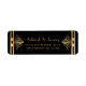 These 1920s vintage-inspired return address labels feature a geometric gold faux foil fan motif at each end on a black background. Personalize them with your names in gold-colored Art Deco-style font and your address in sans serif.