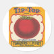 Conception vintage pour la marque Tip-Top Tomatoes. Design rouge, bleu et vert sur un arrière - plan jaune.