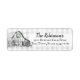 Ferme vintage Noël plaid l'étiquette d'adresse de retour de vacances avec plaid de buffle gris et blanc et grange avec croquis de couronne.