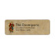 Étiquettes de adresse avec un Père Noël vintage de l'Ancien Monde. Père Noël classique du vieux monde, portant son fameux manteau rouge et portant un sac plein de jouets. Cette Père Noël à l'ancienne, mince et munie d'un bâton de marche pour voyager à travers le pays et offrir des jouets à toutes les filles et tous les garçons. Ancien arrière - plan de style parchemin.