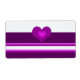 Un étiquette élégant avec un design rayé violet vif sur un arrière - plan blanc. Un coeur violet ombragé au centre.