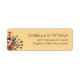 These return address labels feature a warm beige background with a charming, hand-drawn bouquet of flowers on the left side, including white daisies, red poppies, and pink blossoms. The right side showcases clean, uppercase sans-serif typography for easy customization, providing a modern yet classic feel. The design balances minimalistic text with decorative floral elements, creating an inviting and personal touch perfect for adding a unique flair to your mailings.