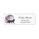 These elegant return address labels have a feminine, watercolor art illustration of a black cat in front of a full moon, with pink and mauve leaves, accented with trendy, botanical line art. Your name and address are in stylish, modern cursive script to complement the girly design.