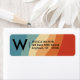 Étiquette d'adresse de retour personnelle tendance avec rayures ondulées dans des couleurs rétro. Grand monogramme centré et nom associé. Une typographie épurée et minimaliste.