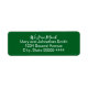 This moving announcement label says "We Have Moved" in a cursive, scribble-style script. We Have Moved is on the top line. The other lines are not in script and are for your name(s) and new address. The label is in the traditional Christmas color of dark green with white text.