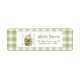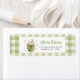 These baby shower return address labels feature a sage green and white gingham border with a watercolor matcha latte illustration in a mason jar. Design includes a large soft green bow tied around the jar and tiny scattered hearts in muted green tones. Shows the playful text "Baby, We Love You So Matcha!" in matching green lettering. Perfect for thank you cards, invitation envelopes, or favor bag tags to add a custom touch. Coordinates with the full matching collection for a complete party theme.