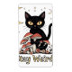 Étiquette Whimsical noir cat framed by red mushrooms and pal