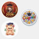 Rendez votre fête de fin d'études 2026 encore plus douce avec cette feuille variée d'étiquettes personnalisées ! Ce pack d'autocollants présente trois modèles adorables dessinés à la main : une charmante jeune fille diplômée de style chibi dans sa toque et sa toge, un badge vibrant "Félicitations !" entouré d'étoiles, et un ours en peluche mignon portant une toque de fin d'études fleurie.