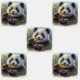 Étiquettes Adorable Ours De Panda Mangeant Bambou