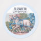 Étiquettes imperméables personnalisés avec une image vintage de 2 agneaux doux tirant un chariot (invisible) et décorés de jolis rubans bleus.