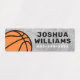 Les étiquettes de l'établissement Waterproof basketball mettant en vedette un basket-ball sur un arrière - plan en béton brut dans différentes nuances de gris. Nom et numéro de téléphone personnalisables sur le côté. Idéal pour étiqueter les effets de votre enfant.