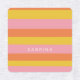 Ce motif doux et ludique présente un design graphique simple de rayures dans une chaude palette de couleurs d'été rose, jaune et orange, personnalisée avec le nom ou le libellé de votre choix.