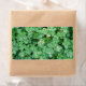 Étiquettes avec un coin enchanté de shamrocks verts chanceux. Cette grappe de trèfle blanc à trois feuilles a aussi un plante unique avec des bords de feuilles crémeuses. Cliquez sur Customiser pour ajouter votre nom ou votre message.