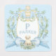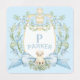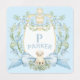 Étiquettes Bleu Grandmillennial Chiot Monogramme Ribbon Crest