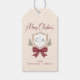 Ajoutez la touche finale parfaite à vos cadeaux avec des étiquettes personnalisées. Le design présente "Joyeux Noël" dans un élégant script manuscrit avec une crête festive et arc de fête. Personnalisez la balise avec les initiales monographiques et la ligne de signature du couple. Toutes les couleurs sont modifiables. © Kimbellished, LLC