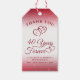 Merci 40e anniversaire mariage invités du couple spécial avec ces balises de faveur de Merci personnalisées rouge et blanc rubis avec un élégant script de typographie de 40 ans en FOREVER design de 40 ans en métal accentué avec des coeurs liés imbriqués avec des initiales monogrammes et des confettis contre un arrière - plan métallique faux rouge rubis brossé. Le titre est modifiable pour un 15e, 80e ou n'importe quel anniversaire. Contactez le concepteur via Zazzle Conversation ou makeitaboutyoustore@gmail.com si vous souhaitez modifier ce design, sur un autre produit ou pour coordonner des éléments.