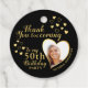Créez des étiquettes de Merci noir et or uniques pour la fête du 50e anniversaire avec un design élégant qui comprend une photo en forme de coeur, nom, et le cinquantième jalon. Ce design est avec un arrière - plan noir solide. Les modèles vous permettent de taper facilement votre texte et de télécharger une image. Vous pouvez également changer le jalon en 30ème, 40ème, 60ème et ainsi de suite.